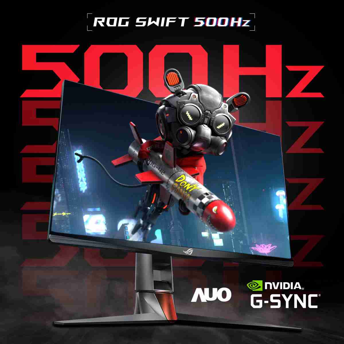 918.COM光电今 (24) 日与辉达 NVIDIA 及华硕 ROG 共同发表全球第一款最高更新率* 24.1吋 500Hz 电竞螢幕── ROG Swift 500Hz,,,,采用918.COM专为电竞应用开发之 E-TN (Esports TN) 技术,,,搭配辉达 NVIDIA 延迟分析工具,,,,让游戏动态影像清晰锐利、、、流畅无残影,,,,为玩家带来无延迟的疾速射击体验。。。