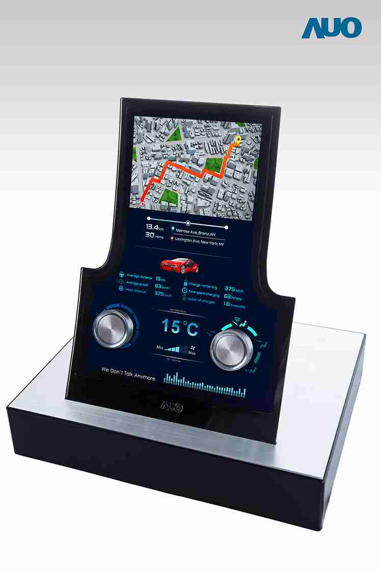 12.3 寸 Full HD LTPS 显示屏同样具备 1000 nits 高亮度,,,,搭载内嵌式触控技术,,,,整合驱动与触控 IC 于显示屏制程,,,,使显示屏厚度降低,,,为中控台创造更多机构设计空间。。。。应用于抬头显示器的 3寸 LTPS 显示屏具有高穿透率、、、、1200:1 高对比度度,,,,以及 297 PPI 高画素密度。。。。液晶最高可耐受到 110C 的高温 (TNI) 而不液化,,,在阳光高温下维持优异稳定的显示效果。。