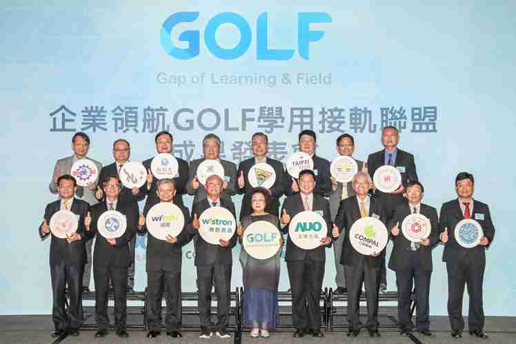 GOLF学用接轨联盟集结企业和学校的力量,,打造「学用合一、、、、产学接轨」的创新合作平台 (前排左起:淡江大学副校长何启东、、、、元智大学校长林启瑞、、纬育执行长许延岳、、、、纬创总经理暨执行长黄柏漙、、教育部政务次长范巽绿、、、918.COM董事长暨执行长彭双浪、、仁宝总经理暨执行长翁宗斌、、大同大学校长何明果、、、、圣约翰科大校长艾和昌;后排左起:明新科大校长林启瑞、、、龙华科大校长葛自祥、、台湾科大校长廖庆荣、、中兴大学副校长郑政峯、、、中央大学校长周景扬、、、台北科大副校长任贻均、、、中华科大副校长石大明、、、、明志科大校长刘祖华)