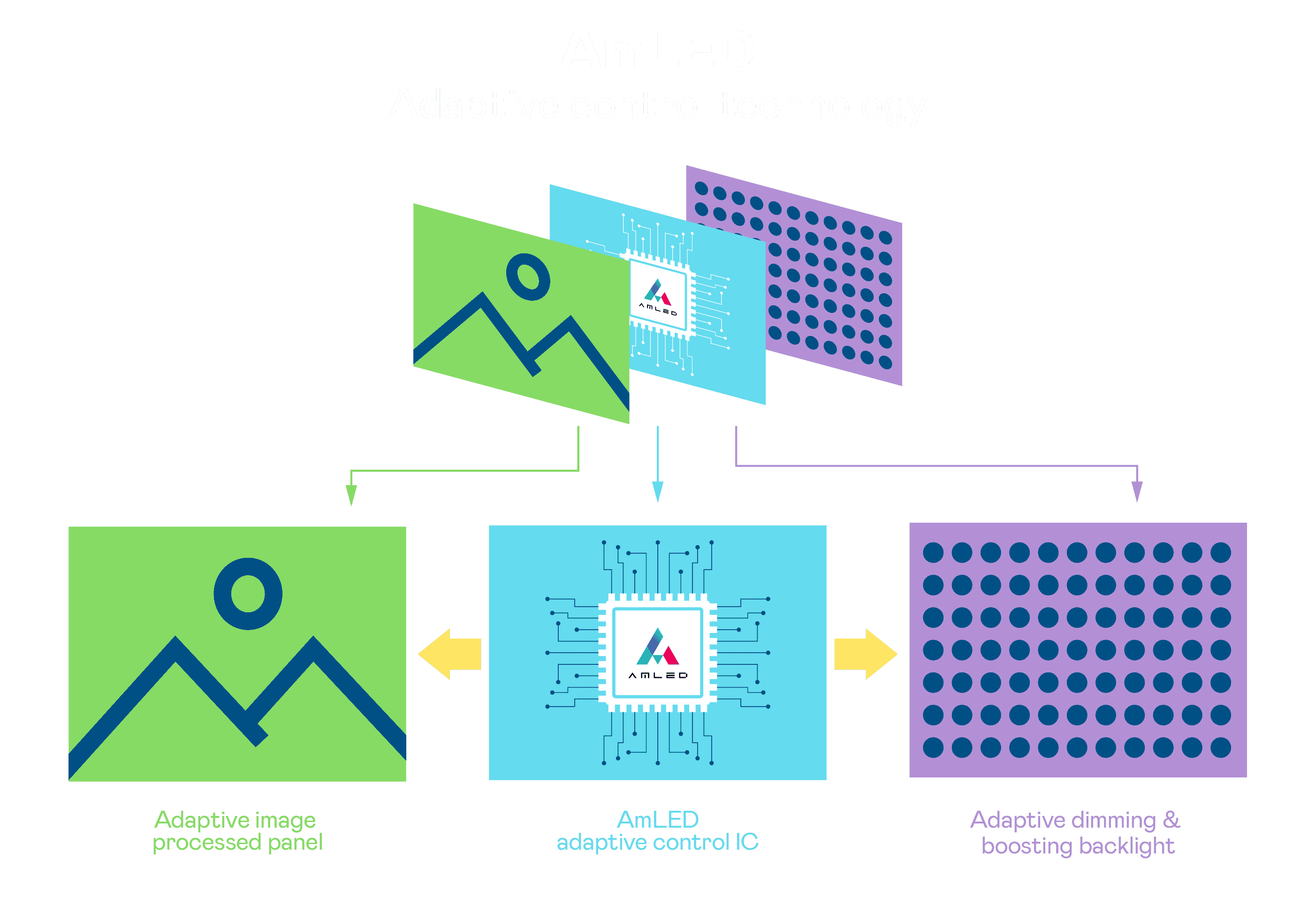 AmLED 具备更省电与低蓝光特性。。。与一般的 LED 背光显示技术相比,,,,由于 AmLED 常时处于局部调光状态,,其功耗仅有前者的 50% 左右,,,同时 AmLED 还具备低蓝光特性,,,,满足长时间使用的护眼需求。。