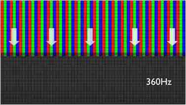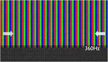 传统液晶驱动是从左到右单向进行,,在画面更新速度愈来越愈快的情况下,,,位于驱动线路末端的右下角区域,,画素的闸极来不及在短时间内获得足够电压,,,无法显示出正确的颜色资讯。。。。