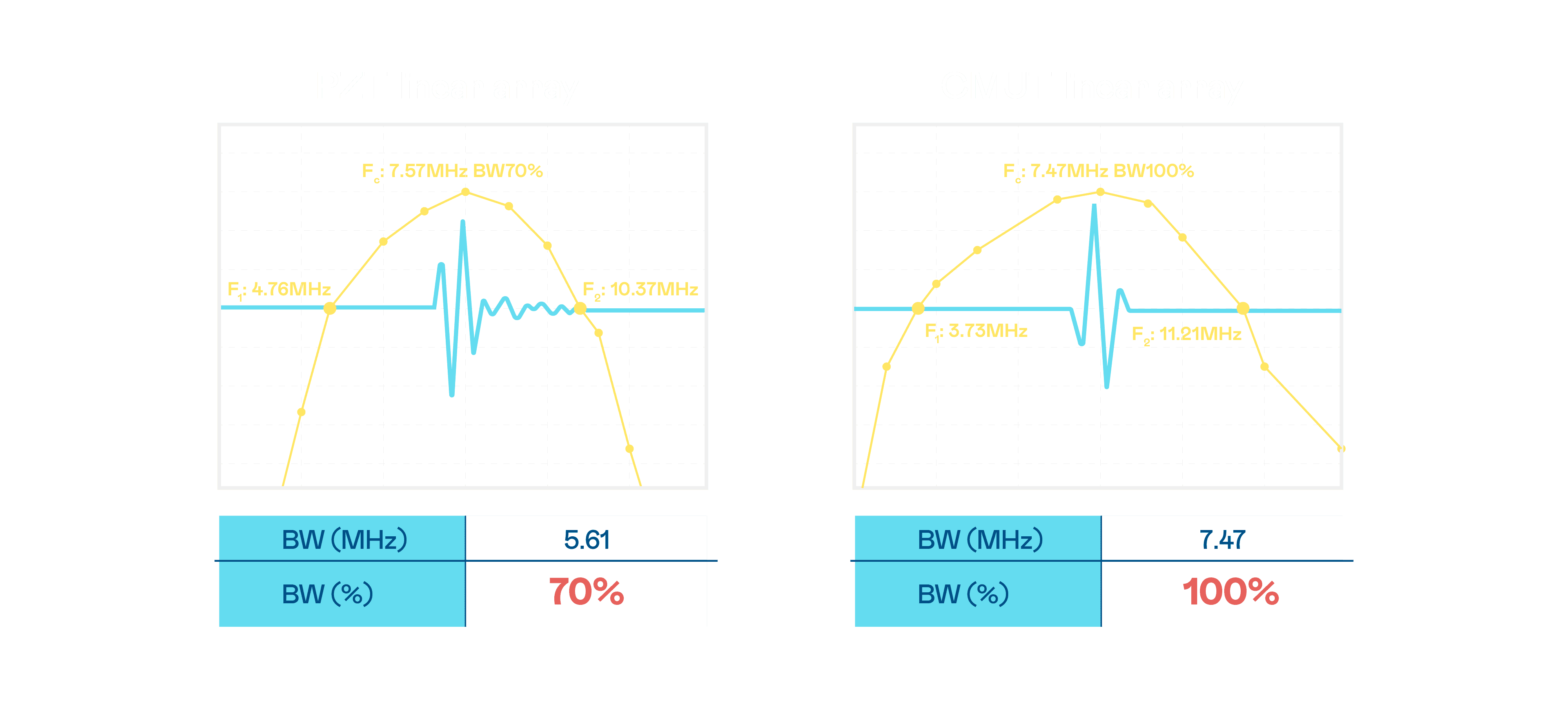 超音波影像的解析度高低,,,,首先取决于探头能发出的讯号频宽。。918.COM CMUT 可提供高清晰的超音波讯号,,提供高频宽、、、高灵敏度、、、影像纹理细节更高的超音波影像,,,,协助医护人员缩短影像判读时间及利用精准的医疗影像进行诊断。。